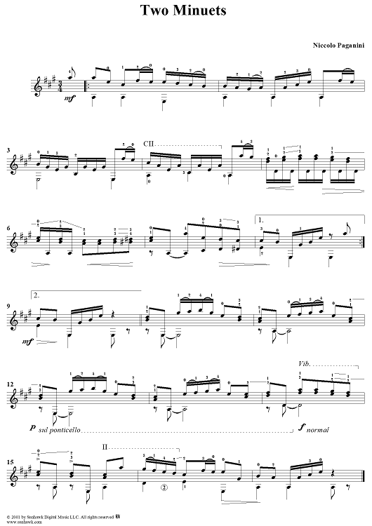 "Two Minuets" Sheet Music by Niccolò Paganini