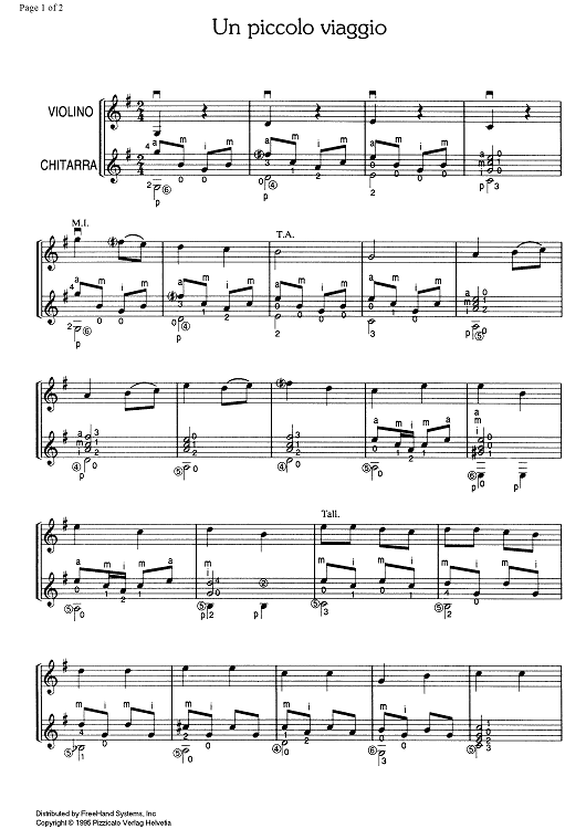 Digital Sheet Music for Un piccolo viaggio by Guido Freschi scored for Violin/Guitar; id:335248
