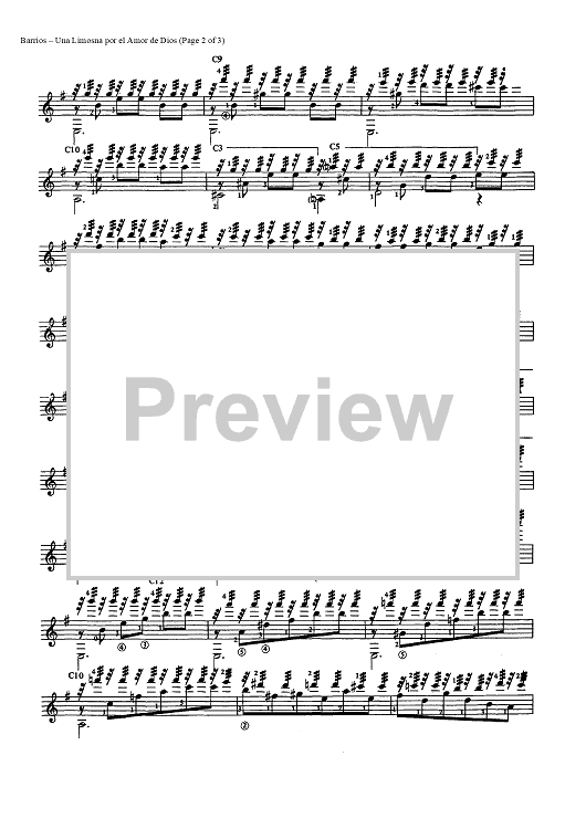 "Una Limosna por el Amor de Dios (Gran Tremolo) (An Alm for the Love of God)" Sheet Music by Agustin Barrios Mangore