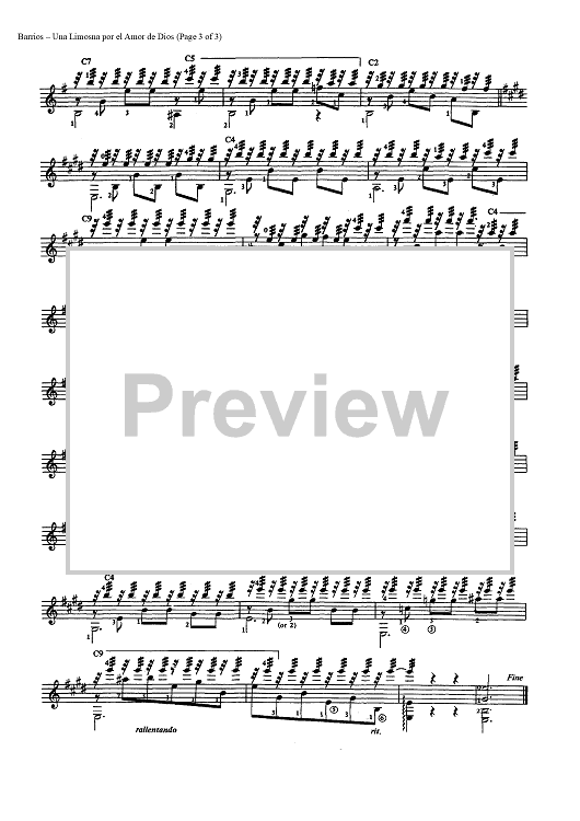 Digital Sheet Music for Una Limosna por el Amor de Dios (Gran Tremolo) (An Alm for the Love of God) by Agustin Barrios Mangore scored for Guitar Solo; id:452234