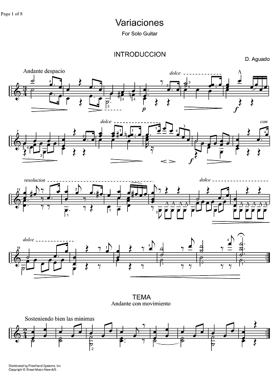 Digital Sheet Music for Variaciones by Dionisio Aguado scored for Guitar; id:322517