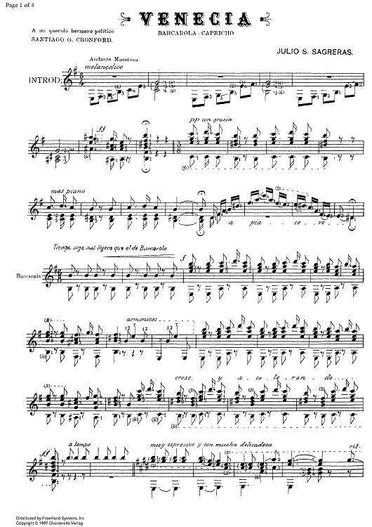 Digital Sheet Music for Venecia by , Julio Sagreras scored for Guitar; id:327187