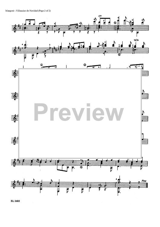 Digital Sheet Music for Villancico de Navidad (Christmas Carol) by Agustin Barrios Mangore scored for Guitar Solo; id:453027