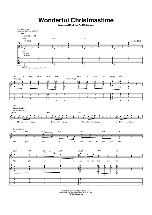 Digital Sheet Music for Wonderful Christmastime by Paul McCartney scored for Guitar Tab; id:398506