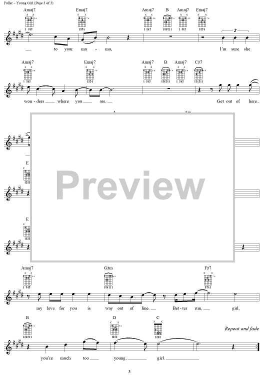 Digital Sheet Music for Young Girl by Jerry Fuller, Gary Puckett, The Union Gap scored for Lead Sheet; id:285041