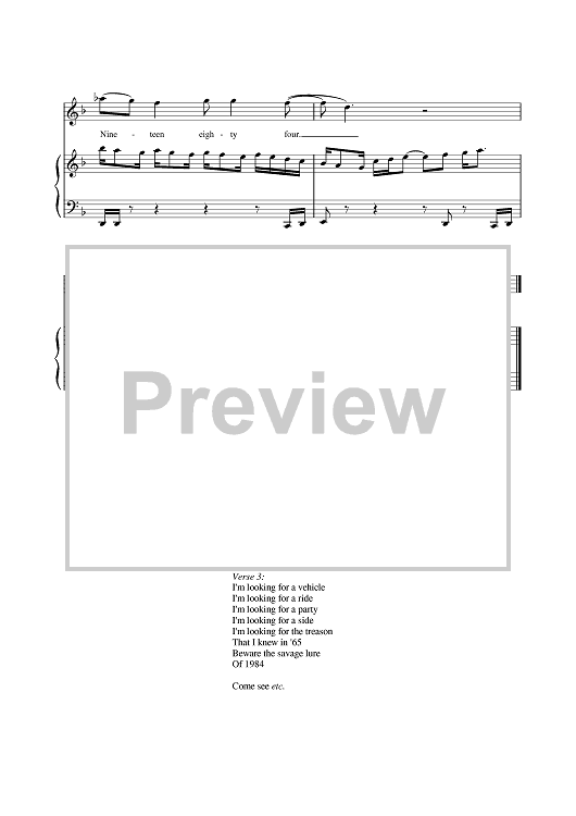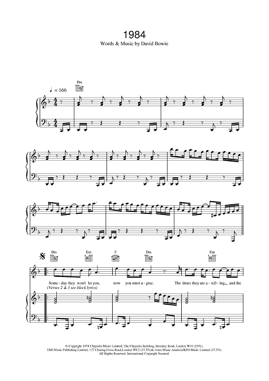 Digital Sheet Music for 1984 by David Bowie scored for Piano/Vocal/Chords; id:378864