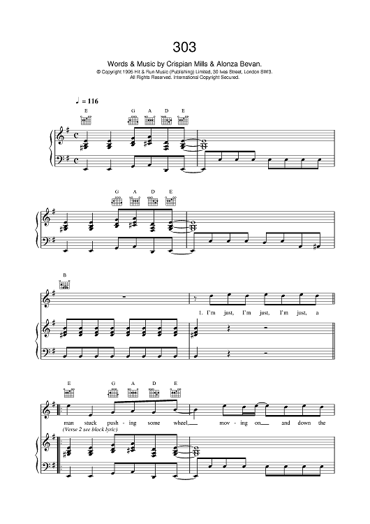 Digital Sheet Music for 303 by Kula Shaker scored for Piano/Vocal/Chords; id:376267