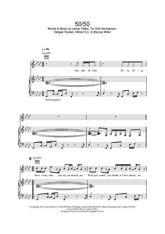 Digital Sheet Music for 50/50 by Lemar scored for Piano/Vocal/Chords; id:378497