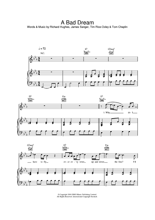 Digital Sheet Music for A Bad Dream by Keane, Tim Rice-Oxley, Tom Chaplin, Richard David Hughes, James Sanger scored for Piano/Vocal/Chords; id:391178