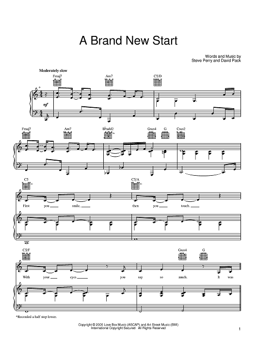 Digital Sheet Music for A Brand New Start by Steve Perry, David Pack scored for Piano/Vocal/Chords; id:394158