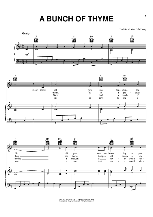 Digital Sheet Music for A Bunch Of Thyme by scored for Piano/Vocal/Chords; id:393908