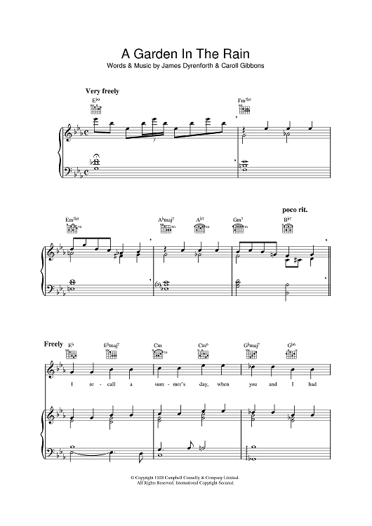 Digital Sheet Music for A Garden In The Rain by James Dyrenforth, Carroll Gibbons scored for Piano/Vocal/Chords; id:392766
