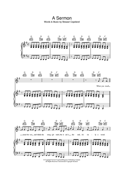 Digital Sheet Music for A Sermon by The Police, Stewart Copeland scored for Piano/Vocal/Chords; id:390300