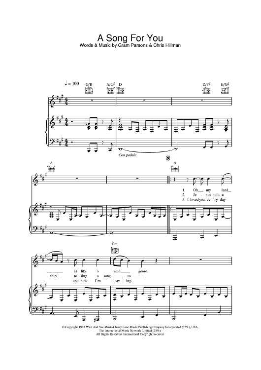 Digital Sheet Music for A Song For You by Chris Hillman, Gram Parsons scored for Piano/Vocal/Chords; id:380899