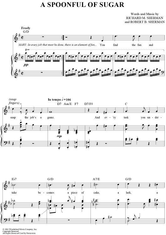 Digital Sheet Music for A Spoonful Of Sugar by Richard M. Sherman, Robert B. Sherman scored for Piano/Vocal/Chords; id:397459