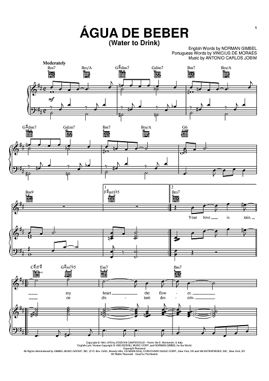 Digital Sheet Music for Água De Beber (Water To Drink) by Norman Gimbel, Antonio Carlos Jobim, Vinicius de Moraes scored for Piano/Vocal/Chords; id:383972