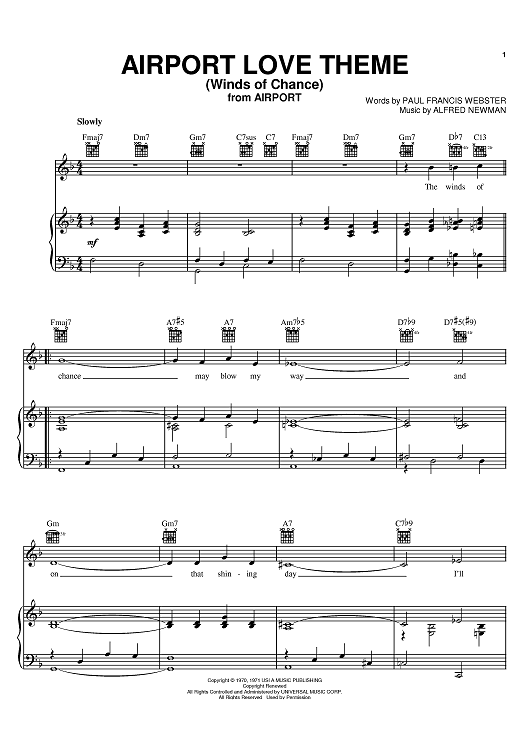 Digital Sheet Music for Airport Love Theme (Winds Of Chance) by Paul Francis Webster, Alfred Newman, Vinnie Bell scored for Piano/Vocal/Chords; id:384063