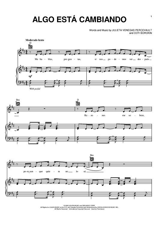 "Algo Esta Cambiando" Sheet Music by Julieta Venegas Percevault