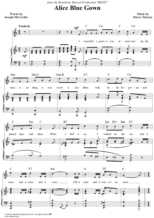 Digital Sheet Music for Alice Blue Gown by Harry Tierney, Joseph McCarthy scored for Piano/Vocal/Chords; id:320610