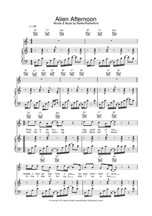 Digital Sheet Music for Alien Afternoon by Genesis scored for Piano/Vocal/Chords; id:376540