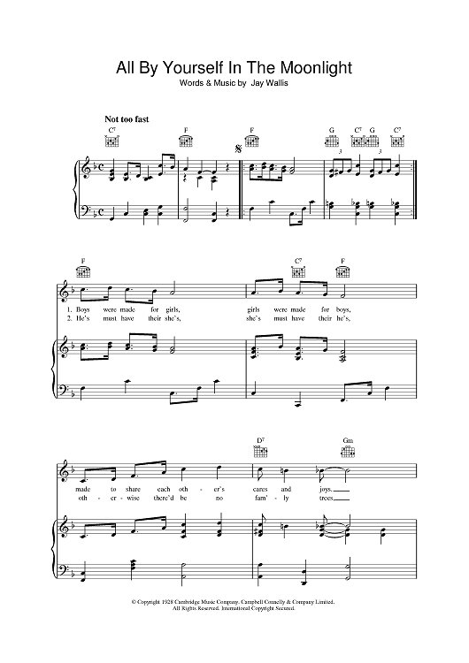 "All By Yourself In The Moonlight" Sheet Music by Jay Wallis