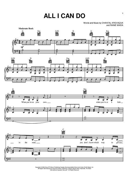Digital Sheet Music for All I Can Do by Chantal Kreviazuk, Michael Raine Maida scored for Piano/Vocal/Chords; id:395749