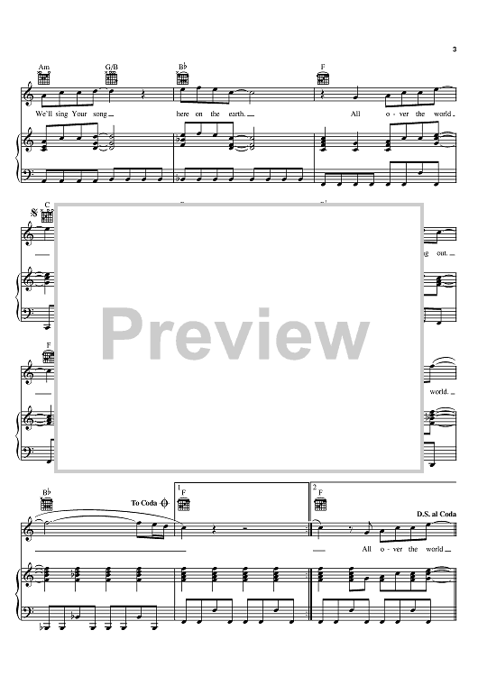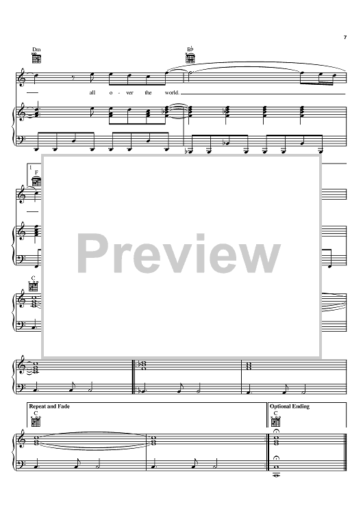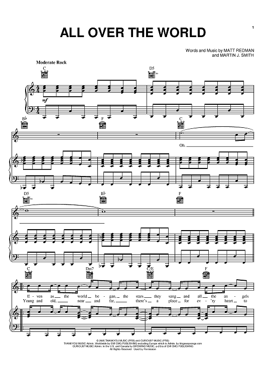 Digital Sheet Music for All Over The World by Matt Redman, Martin J. Smith, Tree63 scored for Piano/Vocal/Chords; id:396599