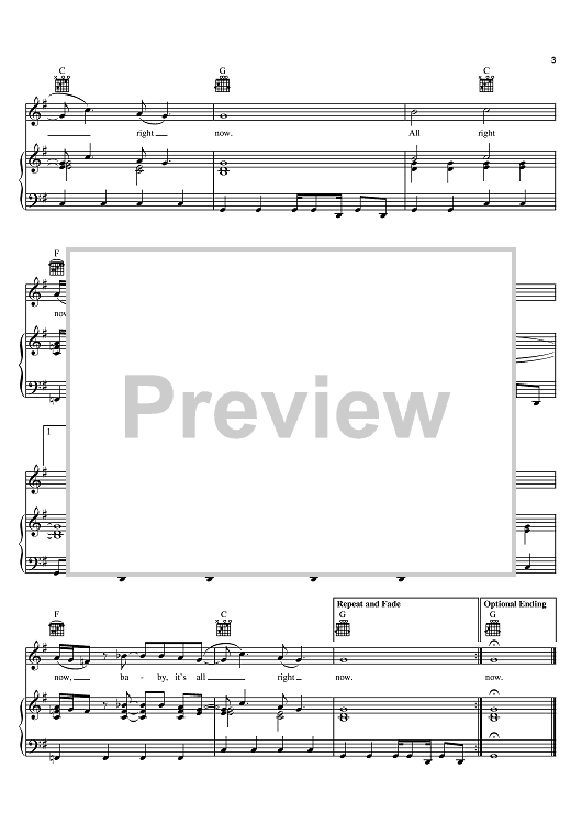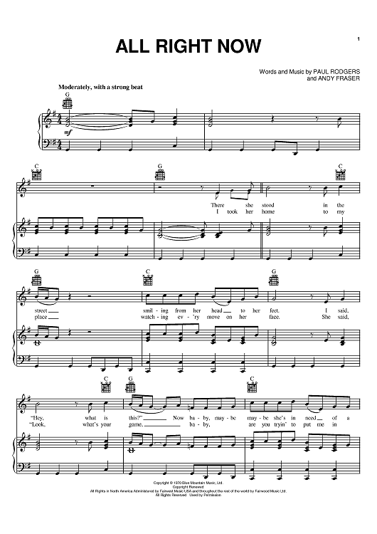 Digital Sheet Music for All Right Now by Free, Rod Stewart, Paul Rodgers, Andy Fraser, Pepsi & Shirlie scored for Piano/Vocal/Chords; id:371439
