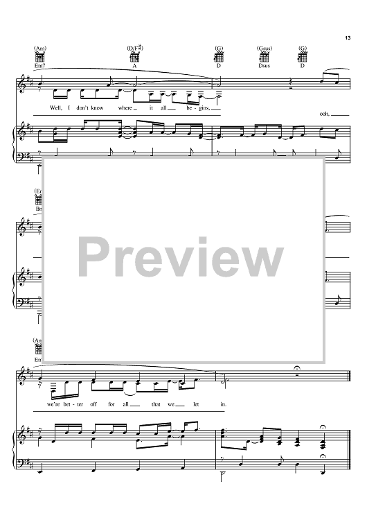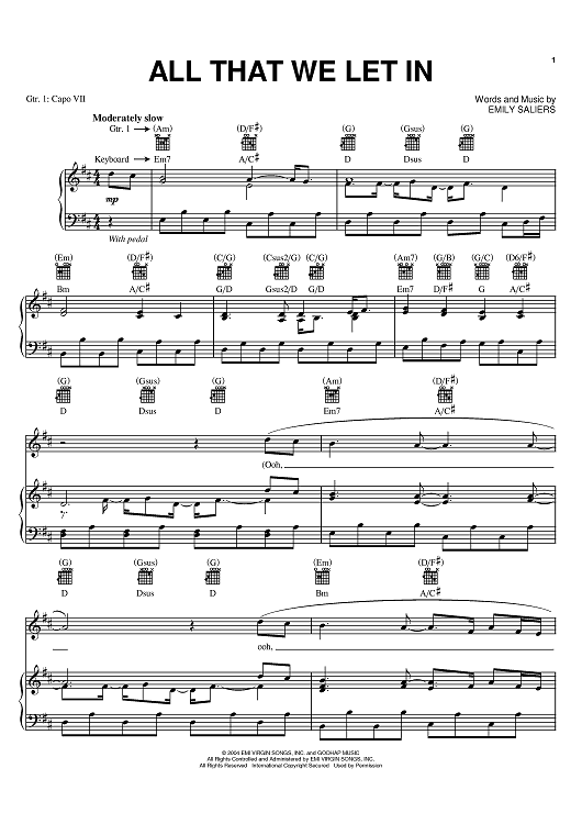 Digital Sheet Music for All That We Let In by Indigo Girls, Emily Saliers scored for Piano/Vocal/Chords; id:384344