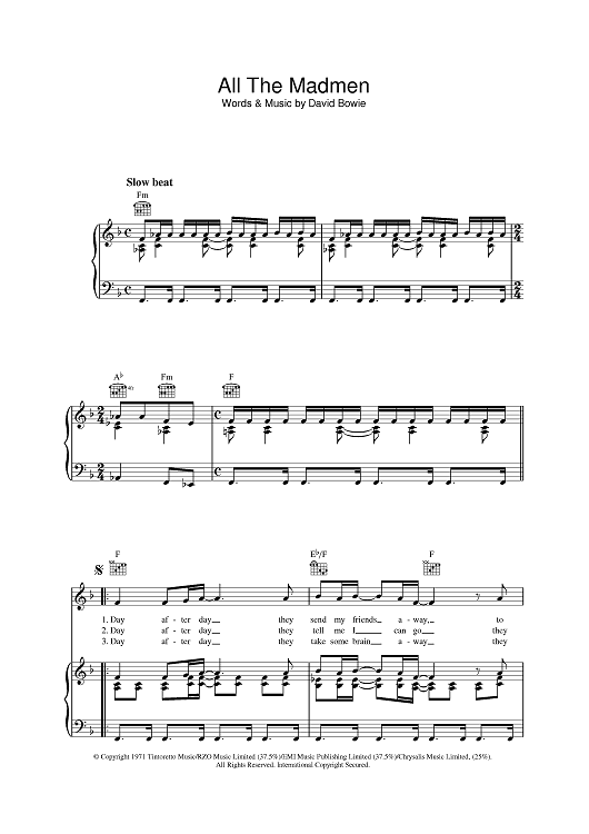 Digital Sheet Music for All The Madmen by David Bowie scored for Piano/Vocal/Chords; id:401264