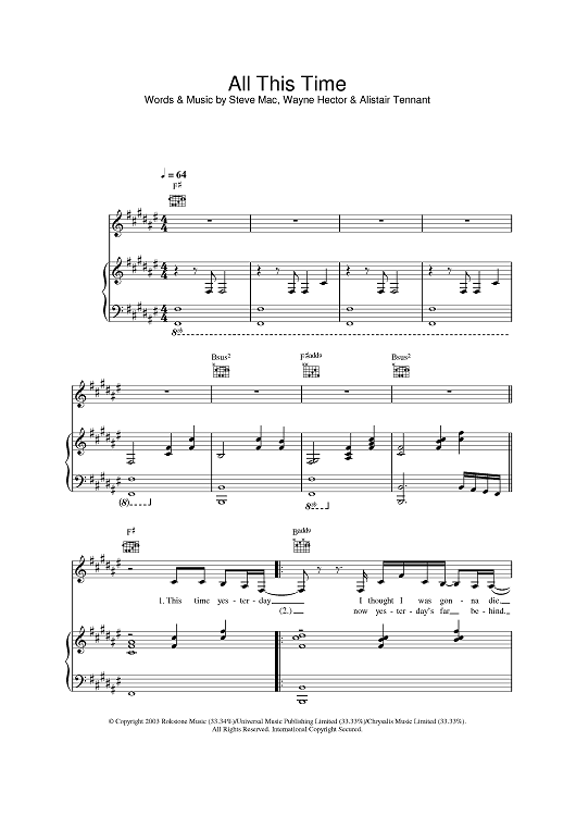 Digital Sheet Music for All This Time by Steve Mac, Wayne Hector, Michelle, Alistair Tennant scored for Piano/Vocal/Chords; id:378346