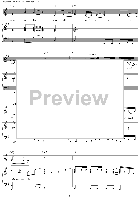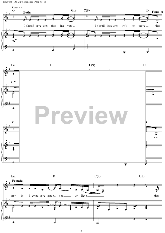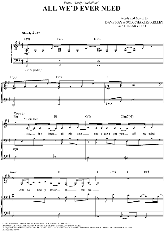 Digital Sheet Music for All We'd Ever Need by Hillary Scott, Lady Antebellum scored for Piano/Vocal/Chords; id:410186