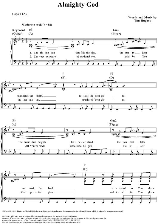Digital Sheet Music for Almighty God by Tim Hughes scored for Piano/Vocal/Chords; id:319997