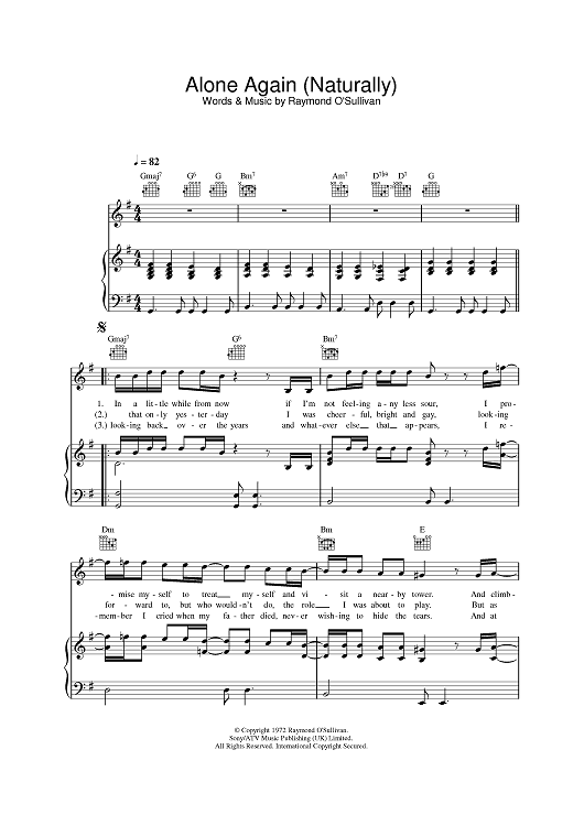Digital Sheet Music for Alone Again (Naturally) by Gilbert O'Sullivan scored for Piano/Vocal/Chords; id:382802