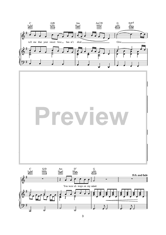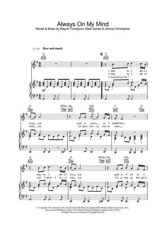 Digital Sheet Music for Always On My Mind by Wayne Thompson, Mark James, Johnny Christopher, Willie Nelson scored for Piano/Vocal/Chords; id:376079
