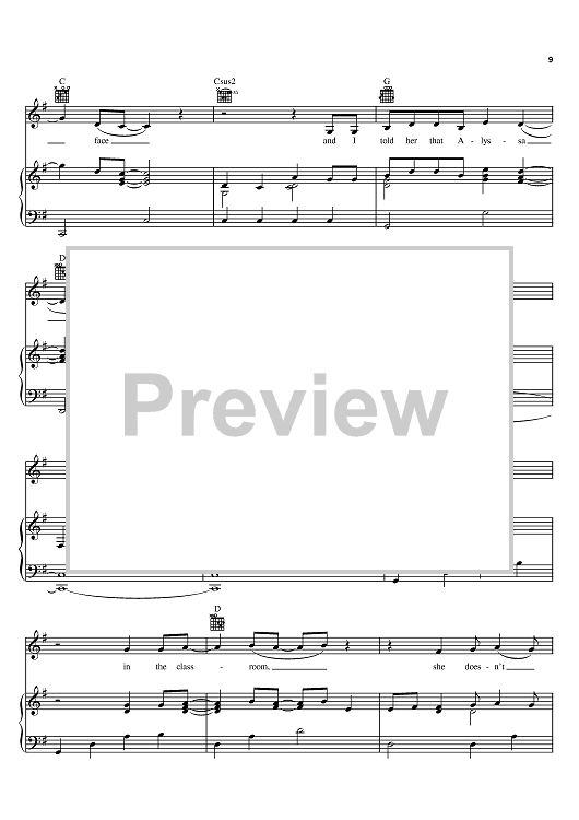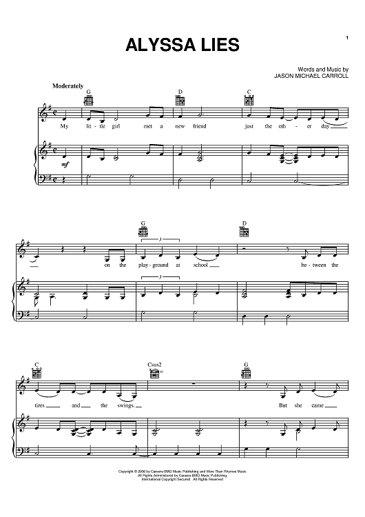 Digital Sheet Music for Alyssa Lies by Jason Michael Carroll scored for Piano/Vocal/Chords; id:394592