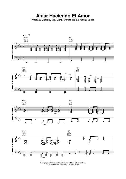 Digital Sheet Music for Amar Haciendo El Amor by Celine Dion scored for Piano/Vocal/Chords; id:376614