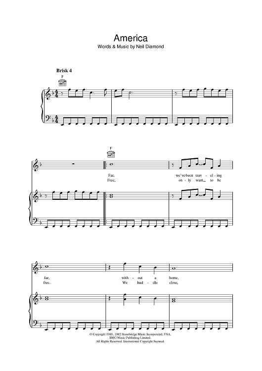 Digital Sheet Music for America by Neil Diamond scored for Piano/Vocal/Chords; id:394081