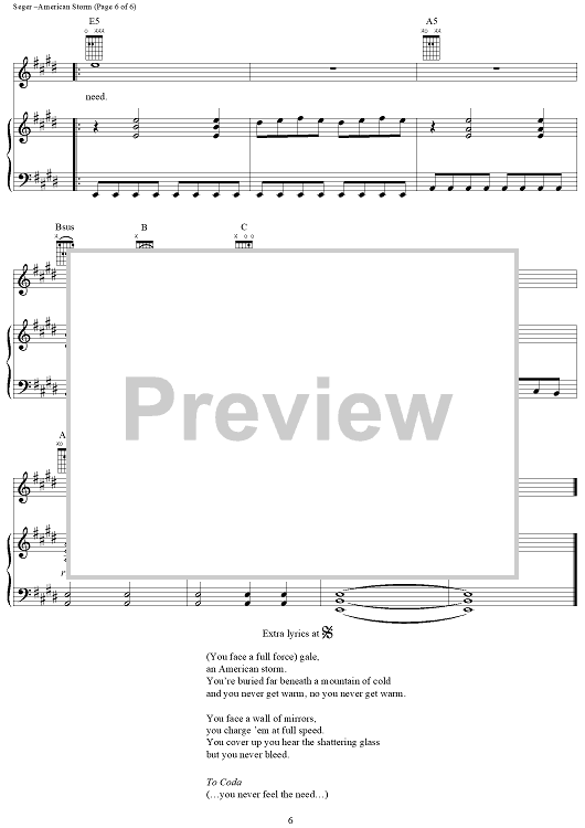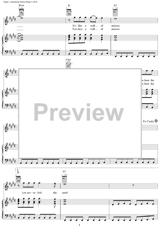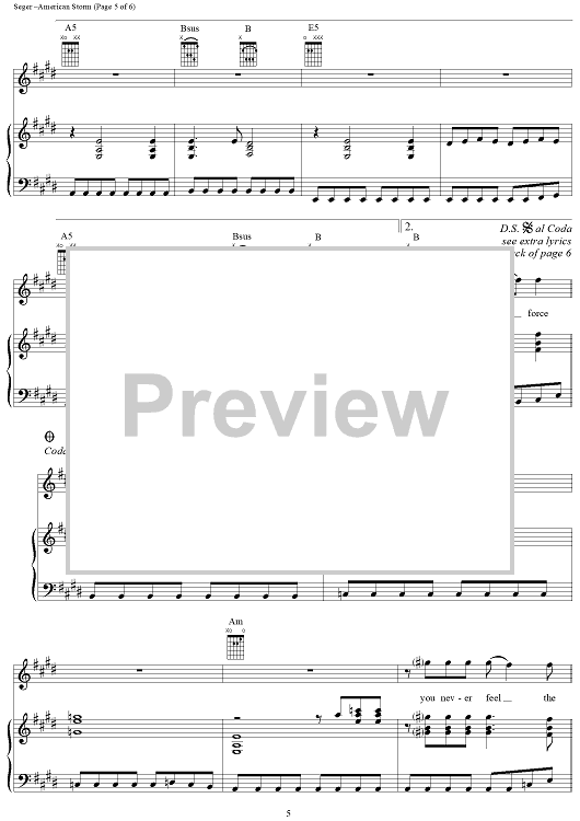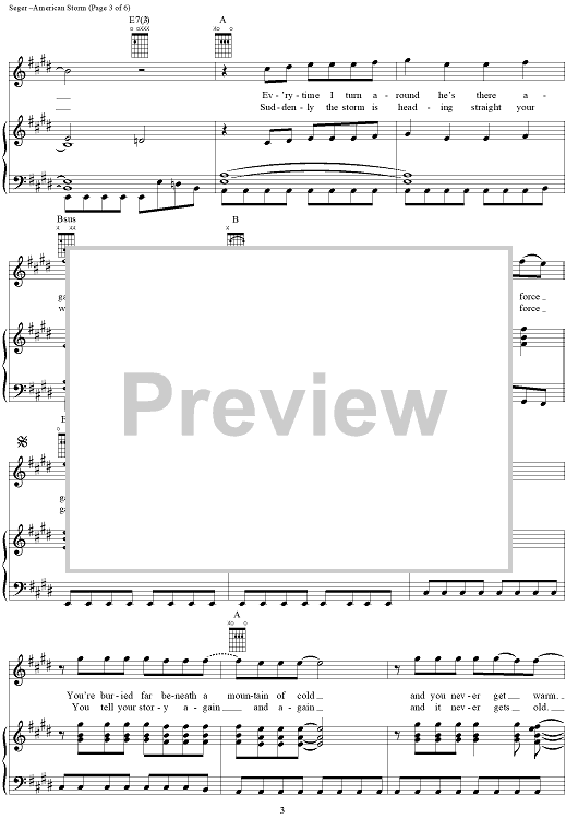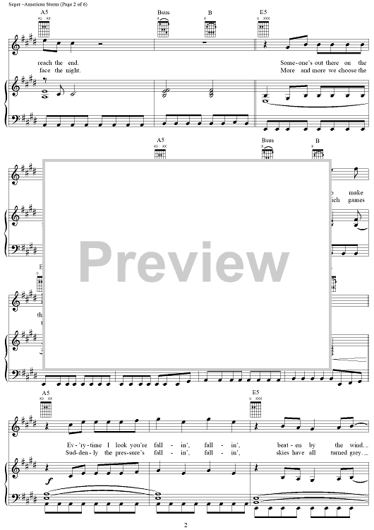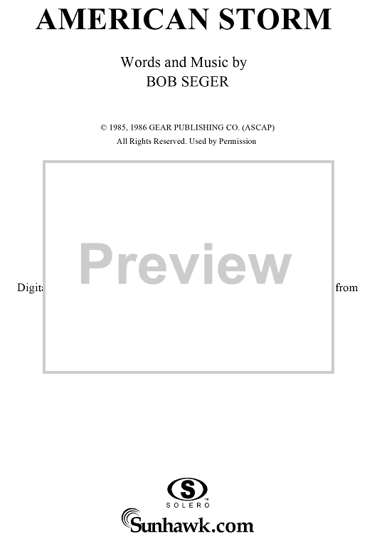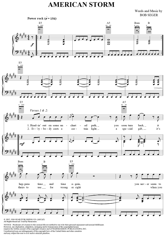 Digital Sheet Music for American Storm by Bob Seger, Bob Seger & The Silver Bullet Band scored for Piano/Vocal/Chords; id:257671