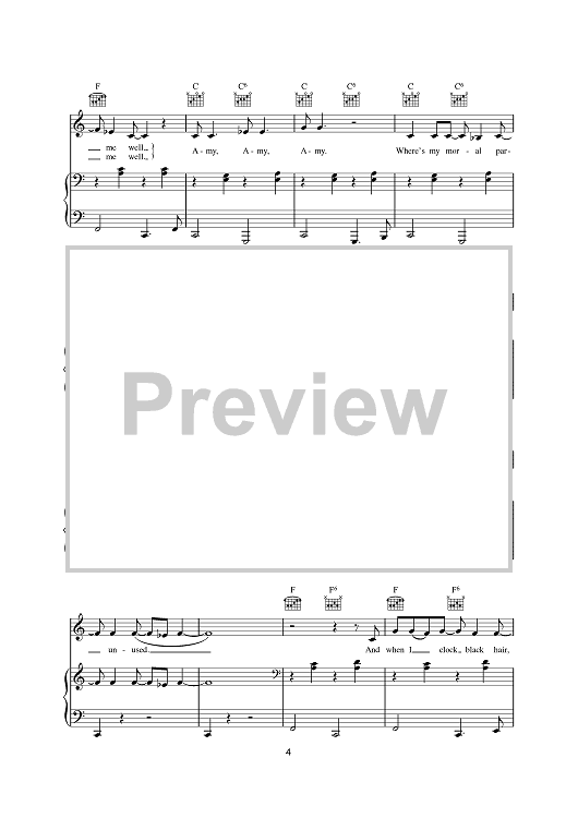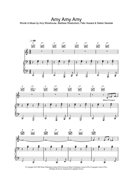 Digital Sheet Music for Amy Amy Amy by Matt Rowe, Amy Winehouse, Felix Howard, Stefan Skarbek scored for Piano/Vocal/Chords; id:378449