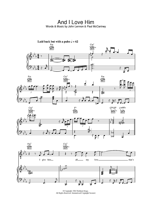 Digital Sheet Music for And I Love Him by Paul McCartney, John Lennon, Diana Krall scored for Piano/Vocal/Chords; id:385362