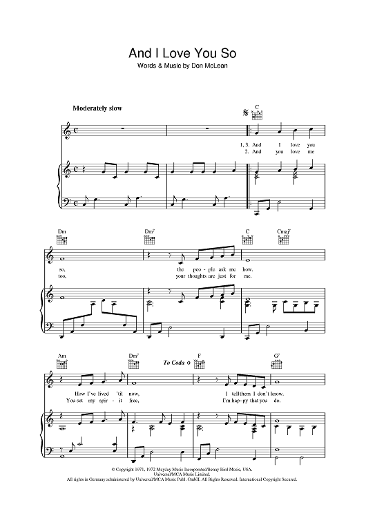 Digital Sheet Music for And I Love You So by Don McLean scored for Piano/Vocal/Chords; id:401401