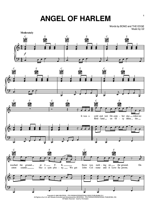 Digital Sheet Music for Angel Of Harlem by U2, Bono, The Edge scored for Piano/Vocal/Chords; id:381984