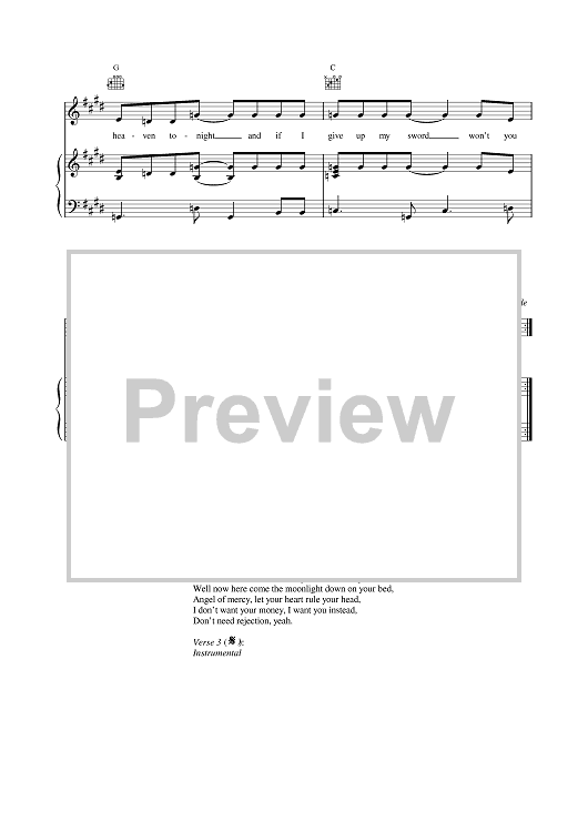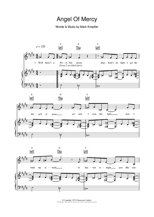 Digital Sheet Music for Angel Of Mercy by Dire Straits scored for Piano/Vocal/Chords; id:376335