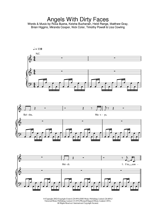 Digital Sheet Music for Angels With Dirty Faces by Sugababes scored for Piano/Vocal/Chords; id:378016