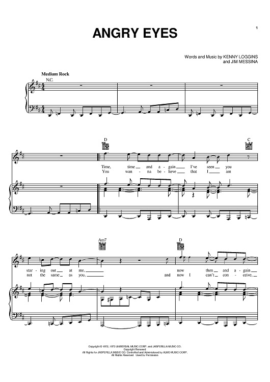 Digital Sheet Music for Angry Eyes by Kenny Loggins, Jim Messina, Loggins and Messina scored for Piano/Vocal/Chords; id:388228
