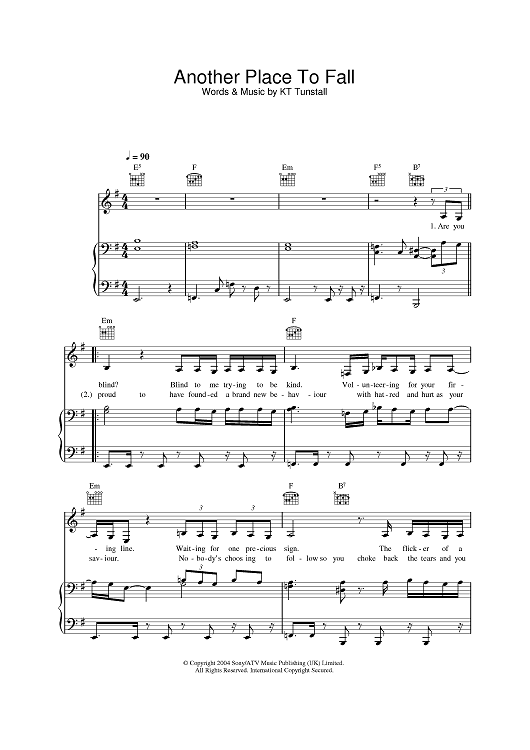 Digital Sheet Music for Another Place To Fall by KT Tunstall scored for Piano/Vocal/Chords; id:385336
