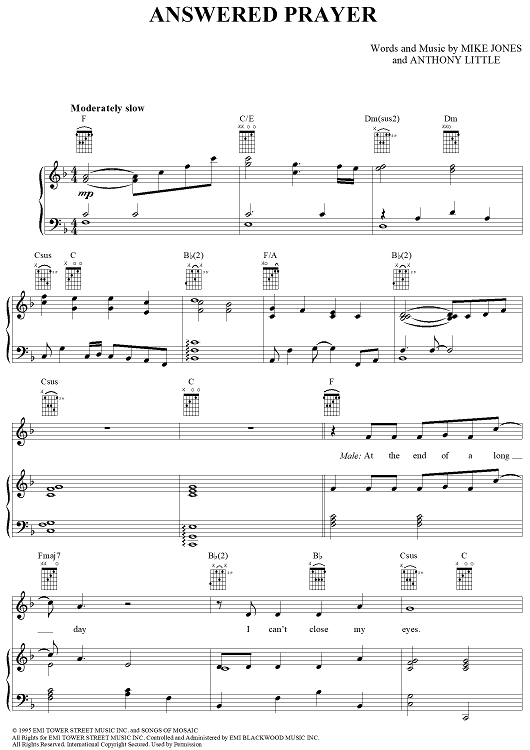Digital Sheet Music for Answered Prayer by Bob Carlisle, Mike Jones, Anthony Little scored for Piano/Vocal/Chords; id:367688