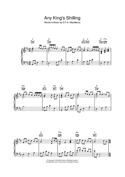 Digital Sheet Music for Any King's Shilling by Elvis Costello scored for Piano/Vocal/Chords; id:401605