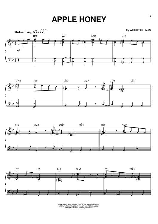 Digital Sheet Music for Apple Honey by Woody Herman scored for Piano/Vocal/Chords; id:381045